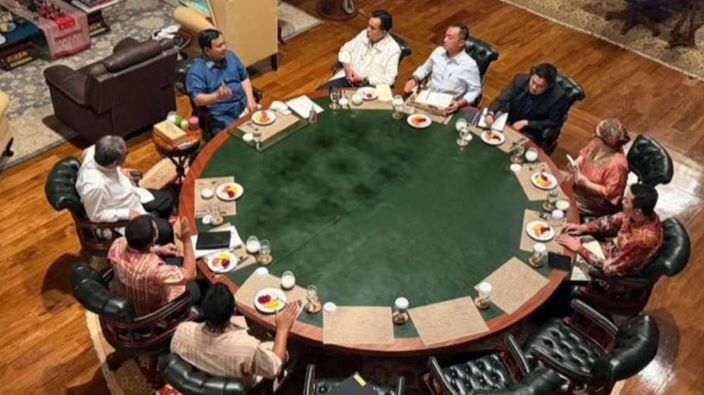 Presiden Prabowo Subianto (kemeja biru) saat menggelar pertemuan dengan sejumlah Menteri dan Ketua MPR RI di Hambalang, Bogor, Jawa Barat, Sabtu (11/10/2025). (Foto: instagram Sekertariat Kabinet @sekertarian.kabinet).
